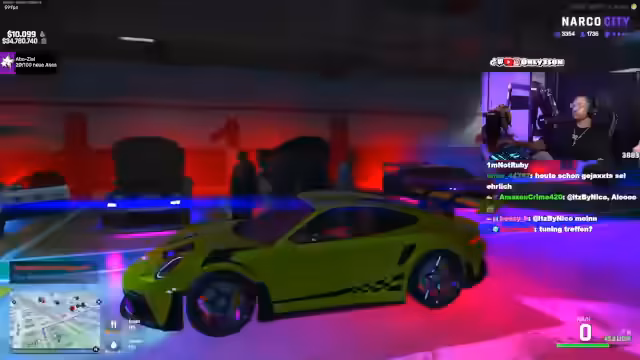 00:19:55Der Streamer besucht einen Mechaniker, um einen Porsche Cayman S zu besichtigen und individuell zu gestalten. Es werden Wunschfarben, Felgen von Bugatti und Interieure von Rolls Royce besprochen. Der Streamer nutzt die Gelegenheit, für seine Gruppe und Geldverdienstraten zu werben und bietet einen Kurs an, wie man innerhalb eines Jahres einen Porsche Cayman S finanziert.