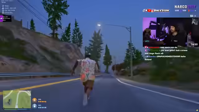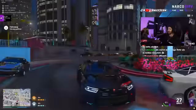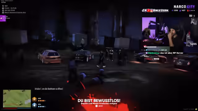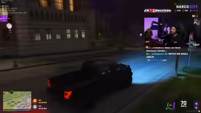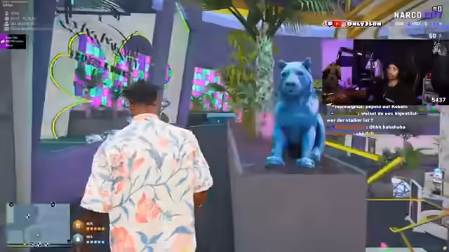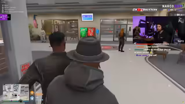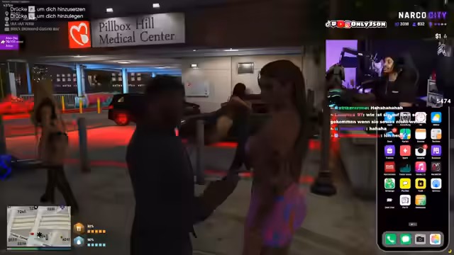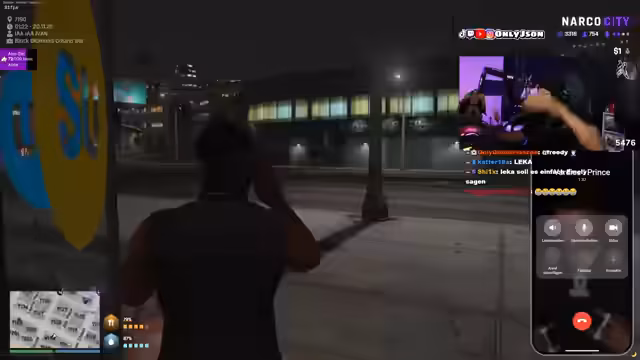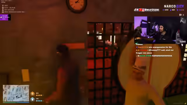 00:16:48Es kam zu einem Telefonat mit Giro von Block 44, der sich in der Nähe des Streamers befand. Giro wurde auf Lautsprecher gestellt, um mit Caravelli zu sprechen, der ihm vorwarf, etwas getan zu haben. Giro reagierte äußerst aggressiv, beschimpfte Caravelli als "Karatanga-Abhäute" und "Cop-Caller" und drohte, ihn und seine Gang auseinanderzunehmen. Die Situation eskalierte schnell, und Giro betonte seine Zugehörigkeit zu Block 44 und seine Ablehnung gegenüber denen, die versuchen, sie zu "ficken". Später tauchten Marshalls im Casino auf, die einen Qualitätscheck durchführen wollten. Der Streamer, James Diamond, versuchte, die Situation zu kontrollieren und die Marshalls zu beeindrucken, indem er ihnen eine Führung durch das Casino gab und über dessen luxuriöse Ausstattung sprach. Dabei kam es zu humorvollen und skurrilen Dialogen, wie der Erklärung des "Fiji-Wassers" im Spa-Bereich oder der Geschichte eines Stuhls, auf dem Michael Jackson einen "Nackenklatscher aus der Hölle" bekommen haben soll.