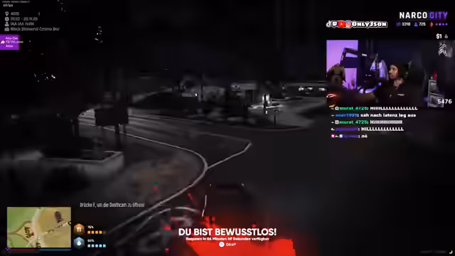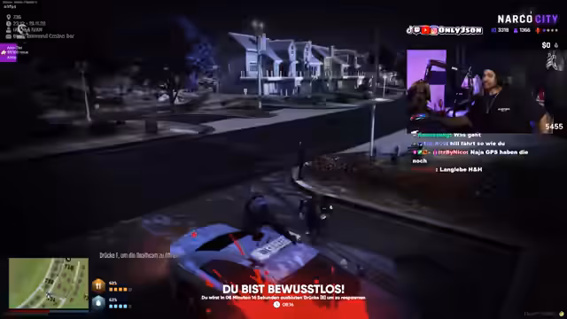 04:37:24Der Streamer und Grace wollen zu 2K fahren, um ein Video zu machen. Er bezeichnet einen Gegner namens Diamond als „Bitch“, der am Boden liegt. Er interpretiert Diamonds Verhalten als Krieg. Er versucht, einen Medic zu erreichen, aber die Medics fahren ab 0 Uhr nicht mehr. Er fühlt sich heiß und macht sich Sorgen, dass er die 5090 Grafikkarte falsch einbauen könnte, was ihn depressiv machen würde. Er weigert sich, gegen Diamond zu kämpfen, da er gerade gegen seinen eigenen Boss geschossen hat. Er scherzt, dass er Kapi verraten würde, wenn er ihm nicht 100.000 gibt. Er bedankt sich bei Max und Jufy für ihre Unterstützung. Ein Medic trifft ein und der Streamer spricht mit ihm. Er fragt nach der CPU, die er sich geholt hat, und erklärt, dass es die krasseste Ryzen sei. Er trifft auf Tina Hase, die ihn angeblich für ein Fotomodel angefragt hatte. Er fragt sie nach ihren früheren Patientinnen, insbesondere nach einer blonden Frau mit blauen Augen und roten Fingernägeln, die ein BBL hatte und Ginevra hieß. Grace fragt, ob es ihm gut geht, und er antwortet, dass er sich um ein paar „Primaten“ kümmern musste. Er fordert Grace auf, ihm ihren Standort zu schicken, damit er sie abholen kann. Er beschwert sich, dass ein Gegner zu zweit auftauchte, obwohl es ein 1-gegen-1 sein sollte. Er wird von Grace angerufen, die ihm mitteilt, dass die Gegner tot sind. Er bedankt sich bei ihr für die Hilfe und fragt nach ihrem Befinden. Sie macht Outfits und er verabschiedet sich von ihr.