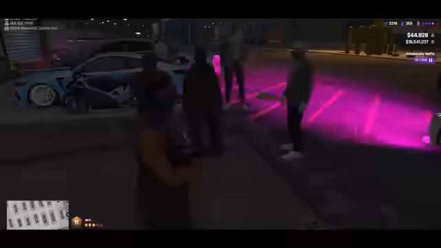 00:44:44Im Very Important Person Büro des Diamond Casino & Resorts forderte der Streamer, James Diamond, 100.000 Dollar Eintritt pro Person von den Marshalls. Diese weigerten sich jedoch und betraten das Büro ohne zu zahlen, was Diamond verärgerte. Er konfrontierte sie aggressiv und drohte ihnen, wenn sie sich wie Könige aufführten. Die Marshalls, die sich als US-Marshals vorstellten, erwiderten die Drohungen und sprachen davon, den Laden schließen zu können. In diesem Moment rief Giro von Block 44 an und mischte sich in das Gespräch ein. Er beschimpfte die Marshalls und drohte ihnen, falls sie versuchten, den Laden zu schließen. Giro forderte sie auf, das Casino zu verlassen und erteilte ihnen Hausverbot. Die Marshalls drohten daraufhin mit Verstärkung, aber Diamond und Giro blieben standhaft und wiesen sie zurecht. Die Situation eskalierte weiter, als die Marshalls sich weigerten zu gehen und Diamond sie schließlich mit Nachdruck aus dem Laden warf.