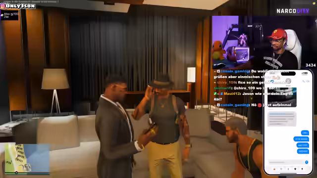 00:16:09Der Streamer kündigt an, Türkisch zu reden und betont seinen hohen Verdienst, um anzugeben. Ein Gespräch mit einer Person namens Aui entsteht, in dem es um Genuss und die Definition von Menschsein geht. Es wird auf Englisch weiterdiskutiert, wobei es um Probleme mit Jermaine Coleman geht. Es wird ein Plan geschmiedet, um Coleman zu konfrontieren. Fiko wird ins Gespräch einbezogen, und es stellt sich heraus, dass er und Elvito in Kontakt stehen. Fiko erzählt von seinem Leben und seinen kriminellen Aktivitäten. Der Streamer ermahnt Skylar, die Gäste nett zu behandeln. Es wird beschlossen, Coleman mit einem Vorwand zu einem Treffen zu bewegen, indem man ihm vorgaukelt, ein Gold-VIP-Ticket im Marktplatz abkaufen zu wollen. Der Streamer imitiert eine weibliche Stimme, um Coleman anzurufen und ihn in die Falle zu locken. Es wird über Cases als Geburtstagsgeschenk für Colemans Frau gesprochen.