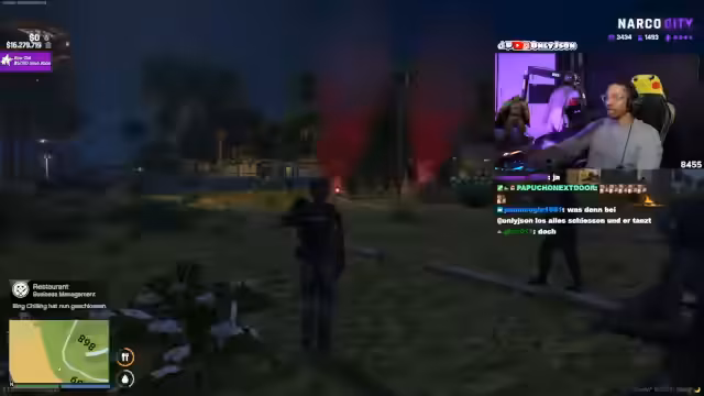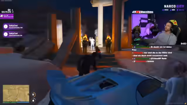 00:26:27Die Spannung steigt rasant an, als der Streamer eine dramatische Evakuierungsszene inszeniert. Im Mittelpunkt steht die Rettung von Frauen, darunter Megan, die sich in der Gefahrenzone befinden. Unter lauten Schüssen und Verwirrung werden die Zivilisten in Sicherheit gebracht. Gleichzeitig eskaliert der Konflikt mit der feindlichen Gruppe, eine beinahe unendliche Geldforderung wird gestellt und eine unklare Dynamik zwischen verschiedenen Charakteren spitzt sich zu.