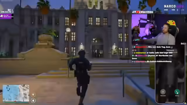 02:49:25Die Lage eskaliert dramatisch. Nach dem Gefecht werden Geiseln genommen. Jigsaw nutzt die Situation und setzt dem Streamer ein Ultimatum. Er will Giro, andernfalls droht er, die Geiseln zu töten. Die Verhandlungen laufen unter extremem Druck, mit Helikoptern im Rücken. Der Streamer muss nun einen fast unmöglichen Weg finden, die Lage zu retten.