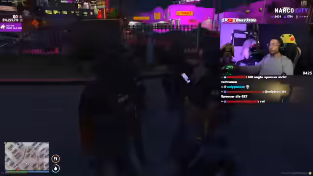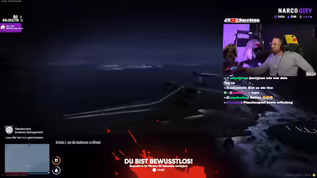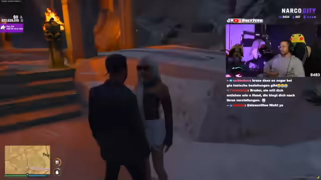 05:51:27Es kommt zu einem dramatischen Austausch über das Spiral Hotel, das dem Jakeson gehört, einem Terrorverdächtigen. Der Streamer will Valentina dorthin bringen, was zu Spannungen führt. Anschließend sorgt die Anwesenheit eines Namens William im Chat für Aufruhr. William, der behauptet, ein Serienkönner zu sein und unter Mordvorwürfen zu stehen, wird von dem Streamer aufgeklärt und darauf hingewiesen, dass er mit der Polizei in Kontakt stehen wird.