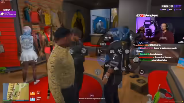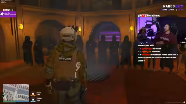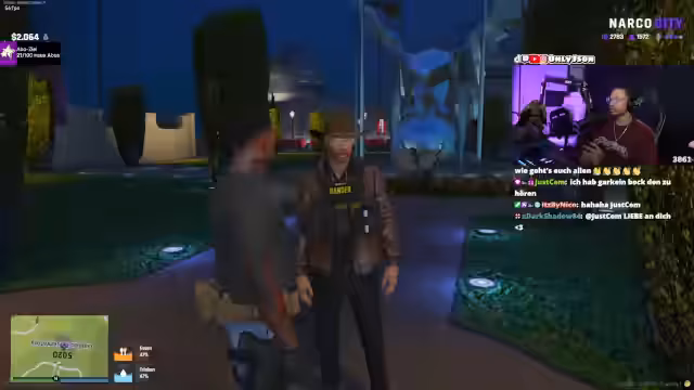 01:14:33Der Streamer koordiniert einen militärischen Einsatz mit einem Partner namens Atomic gegen eine neue mexikanische Familie. Nach kurzer Absprache wird ein Treffen mit den Anführern der Familie, Martin Müller, Scheolinski und einem weiteren Mitglied, arrangiert. Für den Zugriff wird ein spezieller Outfit gewählt, um nicht als Ziel erkannt zu werden. Als Treffpunkt soll das Anwesen des Streamers dienen, da es abgelegen ist und für einen Hubschraubereinsatz geeignet.