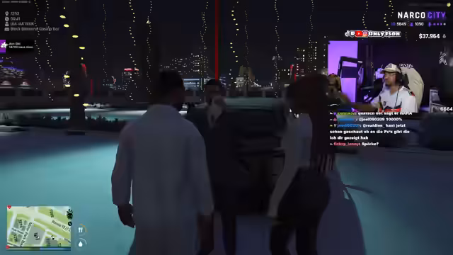 02:10:00Gegen Ende des Streams entspannt sich die Lage allmählich. Es gibt persönliche Gespräche, insbesondere zwischen James Diamond und seinem Sohn Pauli, bei dem eine Anstellung im Casino angeboten wird. Der Stream endet mit Vorbereitungen auf zukünftige Missionen, während die teilnehmenden Spieler ihre Positionen festigen und sich auf neue Herausforderungen vorbereiten. Die Verhandlungen werden abgeschlossen, aber offene Fragen bleiben bestehen.