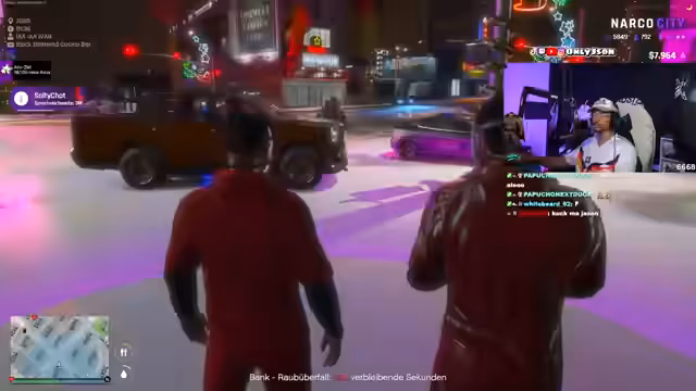 03:31:26Der Streamer kündigt an, dass er und sein Team sich auf einen Bankraub vorbereiten. Sie besprechen die Notwendigkeit, spezielle Outfits und Masken zu besorgen, um anonym zu bleiben. Es geht um die Beschaffung von Kleidung und Ausrüstung, die für den Raub nötig sind. Der Streamer erwähnt explizit, dass es sich um ein Rollenspiel handelt und sie planen, eine Bank auszurauben. Diese Ankündigung markiert den Start eines größeren Events.
