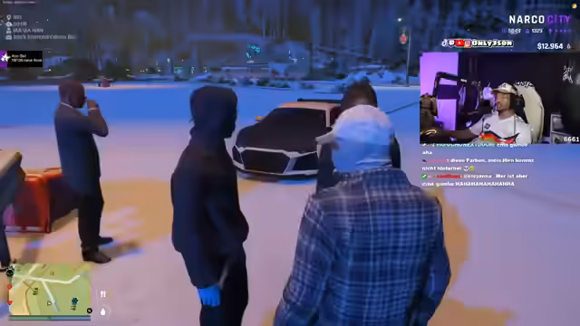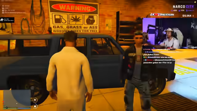 00:07:00Das Team widmet sich dem Tuning eines neuen Fahrzeugs, wobei es zu einer Auseinandersetzung mit den Mechanikern kommt. Nach anfänglichen Meinungsverschiedenheiten über die Ausstattung des Autos – wie Panzerung und Federung – eskaliert die Situation, als die Mechaniker die Dienstleistung verweigern und beleidigend werden. Der Streamer droht mit Konsequenzen und eskaliert den Konflikt, bevor die Gruppe das Fahrzeug schließlich in Schwarz umlackiert und weitere Modifikationen vornimmt.