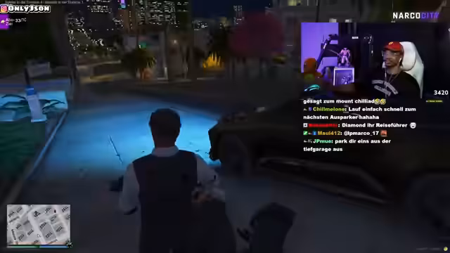 04:56:30Der Fokus verschiebt sich auf die fiktive Verfolgungsjagd durch die Stadt. Yannick, der Protagonist, wird gezielt von FIB-Agenten gejagt. Es kommt zu einem hektischen Fluchtversuch, bei dem der Streamer seine Position ständig wechseln muss, um der Fahndung zu entgehen. Das Gameplay ist geprägt von intensiven Interaktionen mit der Polizei und der Aufrechterhaltung des Rollenspiels, während er gleichzeitig versucht, die Verfolger abzuschütteln.