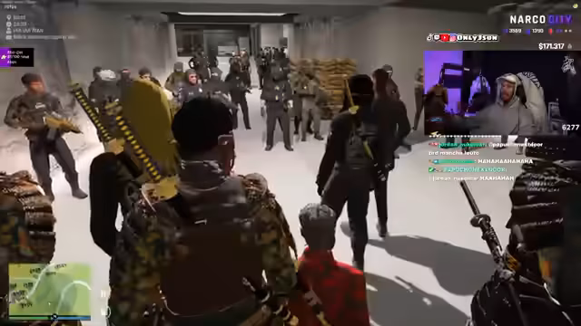 02:35:03Der Befehl, das Schießen einzustellen, wird gegeben, aber die Gegner schießen weiter. Der Streamer ist frustriert über die mangelnde Kommunikation und die Absicht der Gegner, sie tot zu sehen. Er versucht, die Situation zu klären, aber die Gegner schießen weiter, als sie versuchen, hinauszugehen. Der Streamer hat kein Handy, um zu funken. Er wird aufgefordert, Frankie zu übergeben, um das Schießen zu beenden. Er stimmt zu, Frankie zu übergeben, unter der Bedingung, dass das Feuer eingestellt wird. Er geht vor und fordert die Gegner auf, das Feuer einzustellen, da er ihren Mann hat. Er betont, dass kein weiteres Blut fließen muss und dass sie nichts tun. Er ist überrascht von der großen Anzahl der Gegner. Er fragt sich, was er jetzt tun soll und wo Rick ist. Er kann nicht einfach gehen, da Rick wütend wäre. Das gesamte Anwesen ist abgesperrt. Er sucht nach der Garage, wo die Verhandlungen stattfinden sollen. Er findet schließlich den Weg zur Garage. Er wird gebeten, bei den Verhandlungen zu bleiben, aber er möchte gehen. Er wird bedroht, festgesetzt zu werden, wenn er sich nicht daran hält. Er fragt, wer von den 'Klonkriegern' redet und hört nichts. Er hat Angst. Es wird vorgeschlagen, Geld zu geben, um freigelassen zu werden. Er fragt, ob sie ihren Mann bekommen und dafür in Ruhe gelassen werden. Er schlägt vor, einen Kollegen freizulassen und dann die Verhandlungen zu beenden. Die Gegner fordern, dass zuerst einer von ihnen freigelassen wird und dann die Gruppe. Der Streamer fordert, dass die meisten Gegner abziehen, da der ganze Staat anwesend ist. Er argumentiert, dass ihnen gerade erst geholfen wurde und sie nicht direkt wieder eine Waffe ziehen werden. Er schlägt vor, dass die meisten gehen, sie Manni freilassen und sie dann freigelassen werden, damit alle glücklich sind. Ivy wird aufgefordert, Waffen herauszunehmen. Der Streamer ist frustriert, dass sein Handy in der Tasche ist. Er sagt, dass er die Situation locker sieht und nur weg will. Er erhält das Angebot einer Haftminderung, lehnt dies aber ab.
