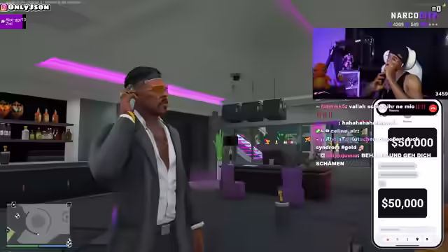 00:46:48Der Streamer fragt Liz, ob sie auch privat für ihn arbeiten würde und bietet ihr an, sie für private Tänze zu Hause zu bezahlen. Er betont, dass sie ihn auf ihrem Handy unter dem Namen Vadim speichern soll. Der Streamer zieht vermeintlich Koks aus ihrem Arsch und legt die Leinen drauf. Es kommt zu anzüglichen Handlungen mit einem Stock, wobei der Streamer Liz anweist, ihn Daddy Vadim zu nennen. Nach dem Stripclub-Besuch macht sich der Streamer auf den Weg zu Weasel News, um die Fake News zu korrigieren. Er fordert Hill auf, mitzukommen. Der Streamer vermutet, dass im Hintergrund etwas abläuft, da seine Leistung beeinträchtigt ist. Er schließt einige Tabs, um die Leistung zu verbessern. Er erfährt, dass Hill angeblich keine Zeit hat, da er Zeit mit seiner Frau verbringen möchte. Der Streamer erreicht Weasel News und wird von Dilli hereingelassen. Er erfährt, dass Falkenberg und Jigsaw ein Kopfgeld von 2 Millionen Dollar auf ihn ausgesetzt haben.