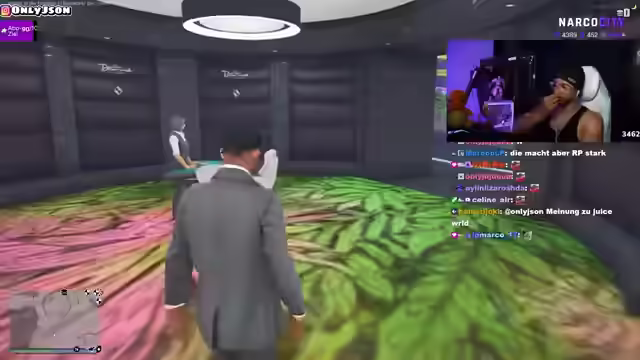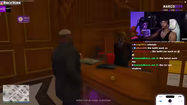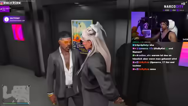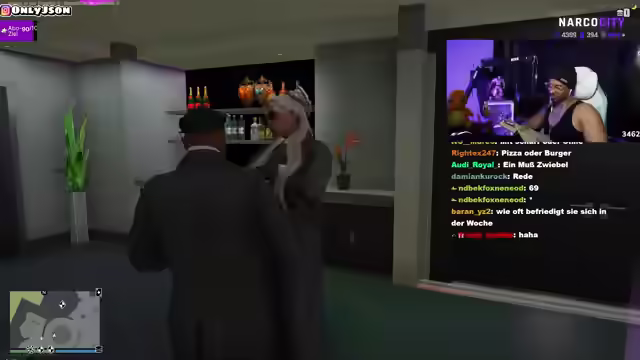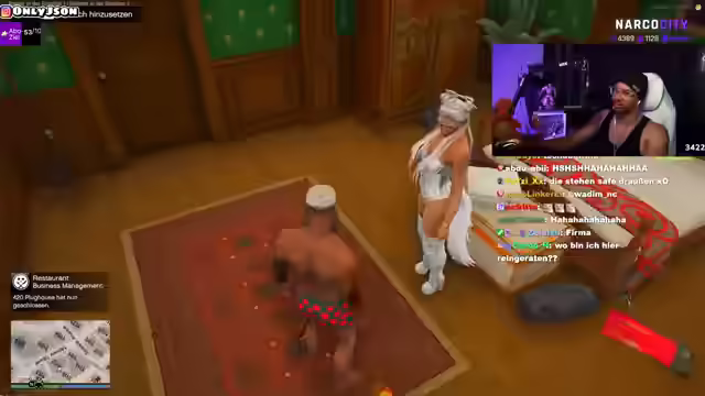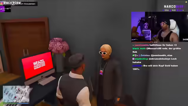00:33:37Es werden Fake News über eine umfassende Renovierung des Casinos verbreitet, die angeblich von Salvatore Caravelli finanziert wird. Der Streamer reagiert wütend und sein Spiel stürzt ab. Er ruft Weasel News an und beschimpft Dilly Dolan, weil er Fake News verbreitet. Er fordert eine Gegendarstellung und droht mit einem Besuch im Laden. Der Streamer erklärt sich selbst zum Präsidenten von Narko City. Im Gespräch mit Dilly stellt sich heraus, dass Caravelli die Fake News verbreitet hat. Der Streamer konfrontiert Caravelli telefonisch und beschuldigt ihn der Lügen und der Verbreitung von Fake News. Er droht damit, Caravellis Laden auseinandernehmen zu lassen, falls er noch einmal Fake News über sein Casino verbreitet. Nach dem Telefonat setzt der Streamer das Gespräch mit Liz fort und fragt nach dem 'Gesamtpaket', für das sie 500.000 verlangt. Er gibt ihr seine Nummer und lässt sich von ihr dominieren, wobei er sie anweist, ihn 'Please Daddy' zu nennen.