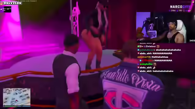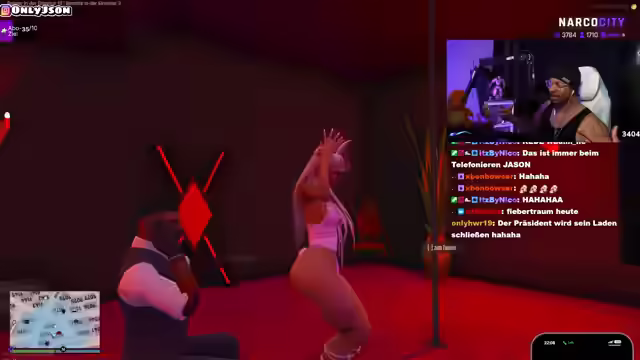 00:28:30Der Streamer interagiert mit der Stripperin Liz, fragt nach der Echtheit ihres Pos und erkundigt sich, seit wann sie im Unicorn arbeitet. Er gibt Anweisungen, dass sie nicht im Unicorn arbeiten darf. Es kommt zu einer Auseinandersetzung mit einem anderen Gast, der zu laut ist. Der Streamer fragt Liz nach dem Preis für einen Privat-Tanz und erkundigt sich nach den angebotenen Leistungen. Er äußert den Wunsch nach einem Leopardentanga und erhält die Information, dass Leute vom Stripclub sie einpacken und ausliefern wollen. Der Streamer gibt daraufhin die Anweisung, diese zu töten. Er bucht Liz für 10 Minuten und fragt nach Dirty Talk, wobei es Grenzen gibt. Er einigt sich auf Daddy Vadim als Anrede. Der Streamer handelt mit dem Chef einen besseren Preis aus und gibt Liz Anweisungen, wie sie ihn auf ihrem Handy speichern soll. Er zieht vermeintlich Koks aus ihrem Arsch und legt die Leinen drauf. Es kommt zu anzüglichen Handlungen mit einem Stock, wobei der Streamer Liz anweist, ihn Daddy Vadim zu nennen.