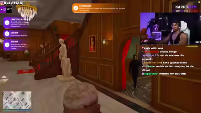 In NarcoCity entfaltet sich ein komplexes Netz aus Beziehungen und Konflikten. Pläne zur Demontage einer Familie werden geschmiedet, während ein Kopfgeld auf den Streamer ausgesetzt wird. Es folgen Besuche im Unicorn, Konfrontationen bei Weasel News und riskante Undercover-Missionen im Hotel, inklusive falscher Identitäten und Auseinandersetzungen. Der Stream endet mit technischen Problemen und dem Versprechen auf Horror-VR am nächsten Tag.