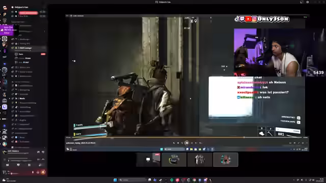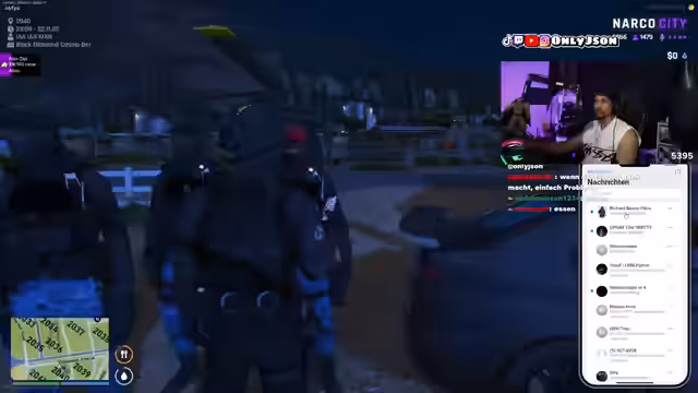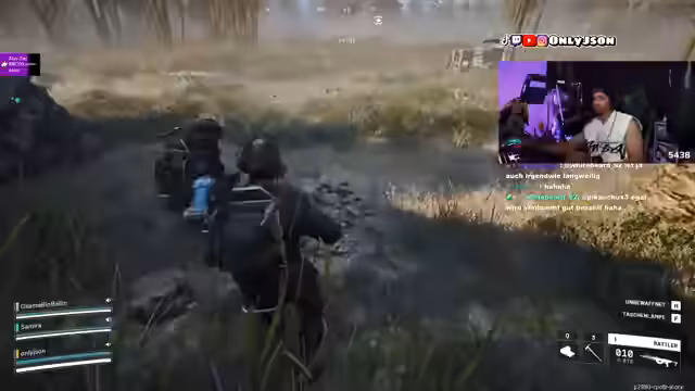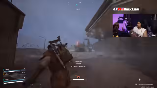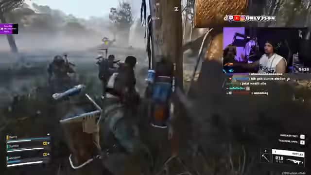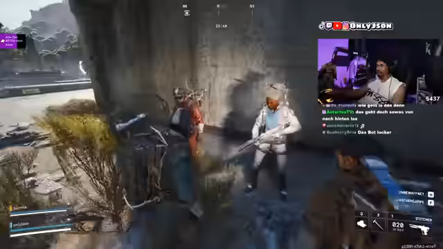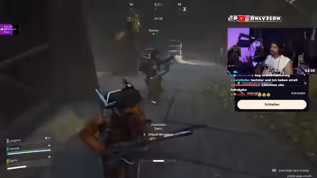 08:09:58Nachdem die Gruppe von Gegnern getötet wurde, entsteht eine Diskussion über die Spielweise und die friedliche Absicht der Streamer. Ein weiterer Spieler, Osama, wird in die Gruppe aufgenommen und stellt sich als Kölner vor, was zu einer überraschenden lokalen Verbindung führt. Die Streamer setzen ihr Rollenspiel fort und versuchen, Osama in ihre fiktive Beziehungsgeschichte zu integrieren, wobei Samira Interesse an Osama zeigt, was ihren Partner eifersüchtig macht. Es kommt zu weiteren Missverständnissen und absurden Dialogen, als der Partner Samira vorwirft, ihn mit Osama betrügen zu wollen. Die Situation wird durch die Vermischung von Spielgeschehen und Rollenspiel immer komplexer, während die Streamer versuchen, die Immersion aufrechtzuerhalten und gleichzeitig die Reaktionen der neuen Mitspieler zu beobachten.