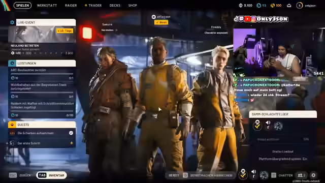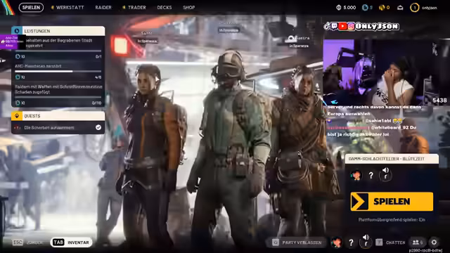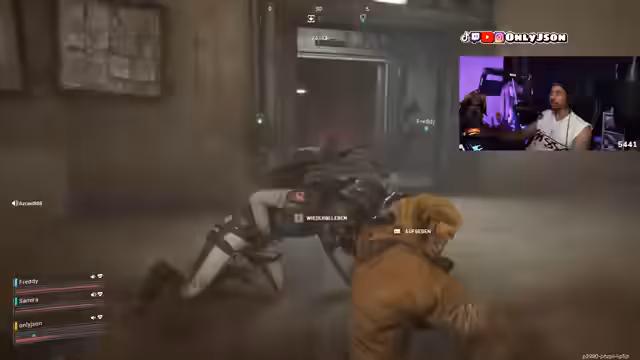 10:02:51Es wird eine Diskussion über verschiedene Spielmechaniken geführt, darunter die Möglichkeit, in First-Person zu spielen (was als „krank“ empfunden würde, falls es implementiert wird). Die Bewegungen im Spiel werden mit Assassin's Creed und Uncharted verglichen, insbesondere die Kletterelemente. Ein Spieler fragt nach den besten Waffen gegen die riesigen Spinnenroboter und welche die stärkste Waffe im Spiel ist, wobei „Jupiter“, „A-Pilot“ und „Minigun“ genannt werden. Es wird auch ein TikTok-Clip erwähnt, in dem ein Spieler mit einem Greifhaken auf eine Drohne reitet. Die Spieler bemerken, dass sie in eine Lobby nachgejoint sind, in der bereits Kämpfe stattfinden. Die Tür zu einem Bereich ist offen, und es kommt zu einem erneuten Kampf, bei dem die Spieler versuchen, sich als „Friendly“ auszugeben, jedoch schnell eliminiert werden. Die Frustration über das „Nachjoinen“ und die Aggressivität der Gegner wird deutlich.