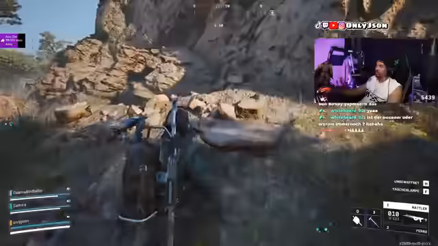 06:55:44Die erste Runde 'Ark Dick Riders' beginnt mit weiteren Audio-Anpassungen, da die Stimme des Mitspielers zu leise ist. Nach erfolgreicher Einstellung des Push-to-Talk-Systems sind sie bereit für ihre Mission. Sie planen, Feinde als 'friendly' anzusprechen, um dann zuzuschlagen. Die weibliche Stimme wird humorvoll ermahnt, sich im Spiel zu benehmen. Sie landen in einer Zone, in der sie auf andere Spieler treffen. Der Streamer und sein Team versuchen, sich als freundlich auszugeben und interagieren mit englischsprachigen Spielern. Die weibliche Stimme wird als 'Ehefrau' vorgestellt, die zum zweiten Mal spielt. Sie versuchen, sich mit den anderen Spielern zu verbünden und gemeinsam zu looten, während sie intern planen, diese irgendwann zu 'abknallen'. Die Situation eskaliert, als sie in einen Kampf verwickelt werden und der Streamer stirbt. Es stellt sich heraus, dass sie möglicherweise ihre eigenen Verbündeten getötet haben. Sie beschließen, eine neue Runde zu starten und hoffen, diesmal auf deutsche Spieler zu treffen.
