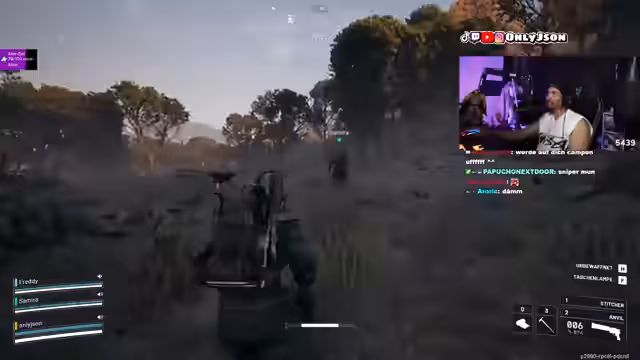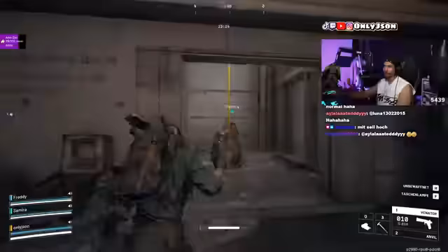 07:19:18Die Gruppe wird von Gegnern angegriffen, und die weibliche Stimme erzielt ihren ersten Abschuss. Santo wird in seiner Geschichte über seine frühere Beziehung unterbrochen. Der Streamer gibt Santo Ratschläge, wie man mit Frauen umgehen sollte, und betont, dass man sie 'einfach packen und ficken' müsse. Er wiederholt diese provokante Aussage und lenkt dann die Aufmerksamkeit auf die Gegner im Spiel. Sie versuchen, sich als 'friendly' auszugeben und nicht zu schießen, während sie mit englischsprachigen Spielern interagieren. Die weibliche Stimme wird erneut als Ehefrau vorgestellt. Es kommt zu einer humorvollen Tanzeinlage im Spiel, und der Streamer bittet die anderen Spieler, seine 'Frau' zu beschützen. Die weibliche Stimme stellt sich vor und bestätigt ihre Beziehung zum Streamer. Die Gruppe gerät erneut in einen Kampf, bei dem sie verwirrt sind, was passiert. Sie bitten um Heilung und diskutieren, ob sie die Gegner umbringen sollen. Santo schlägt vor, auf den richtigen Moment zu warten, um zuzuschlagen. Die Gruppe wird erneut angegriffen und die weibliche Stimme wird getroffen. Der Streamer kündigt an, einen Kaffee zu holen und überlässt die Runde den anderen beiden, während die weibliche Stimme mit Santo flirtet und der Streamer eifersüchtige Kommentare macht.