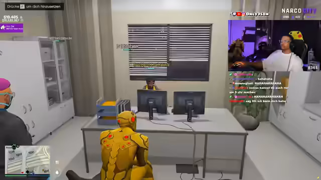 03:46:45Im Büro kommt es zu einem chaotischen Streit zwischen dem Streamer und seinem Management. Er wirft ihnen unprofessionelles Verhalten vor und kritisiert die Anwesenheit und das Auftreten der Mitarbeiter. Der Streamer versucht, die Situation zu kontrollieren, indem er bestimmte Personen aus dem Raum schickt und klare Regeln für das Verhalten in der Einrichtung fordert.