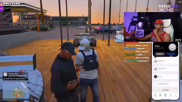 03:55:21Der Streamer gibt an, wegen Ginevra hier zu sein und wird von jemandem abgeholt. Er stellt fest, dass es sich um Freunde einer Freundin von Ginevra handelt und bittet den Chat um Unterstützung, da er die meisten von ihnen noch nicht gut kennt. Er bemerkt, dass er noch nicht beim Kleidungsladen war und bietet an, sie dorthin zu fahren. Ginevra bemerkt ein neues Parfum, das nach Lavendel riecht, aber der Streamer korrigiert sie und sagt, es sei weißer Morschus. Er spricht über seine Transformation zum Geschäftsmann und seinen Wunsch, sich weiterzuentwickeln und eine Frau zu finden. Währenddessen erhält er einen Anruf von jemandem, der ihn als Casino-Besitzer entlarvt und seinen Ruf in der Stadt erwähnt. Er fragt nach den Meinungen über ihn und betont, dass er sich nicht von anderen Meinungen leiten lässt. Er bittet Ginevra, sich einfach etwas Entspanntes anzuziehen und wartet im Wagen. Ginevra wird von jemandem gewarnt, sich von Diamond fernzuhalten, da er sie nur ausnutzen würde. Sie entgegnet, dass sie diese externe Meinung nicht unterstütze. Der Streamer repariert den Wagen und erzählt von seiner Vergangenheit als Mechaniker und Ginevra erzählt, dass sie Anwältin war. Er fragt sie, ob sie sich für ihn umgedreht hätte, wenn ihre Leute nicht dabeigestanden hätten, was sie verneint. Er erklärt, dass es im Knast ein Prinzipding sei, sich nicht umzudrehen. Er stellt ihr die Gegenfrage, ob sie für ihn aus einem Fenster springen würde, was sie ebenfalls verneint. Es werden Hobbys und die Bekanntschaft mit den Nobodies thematisiert. Der Streamer gibt Ginevra ein Kennzeichen von seinen Kollegen für den Fall, dass sie abhauen will. Er wird von einem seiner Leute angerufen, der ihn mit „Bra“ anspricht und von Problemen berichtet. Der Streamer bittet ihn, sich zu melden, sobald er sich bei ihm meldet und beendet das Gespräch.