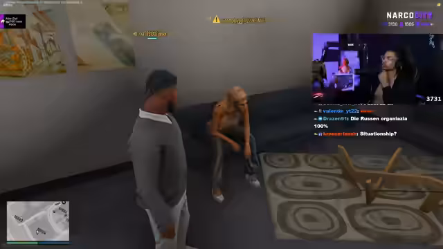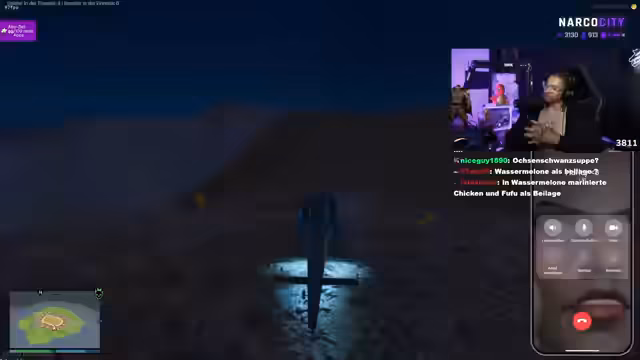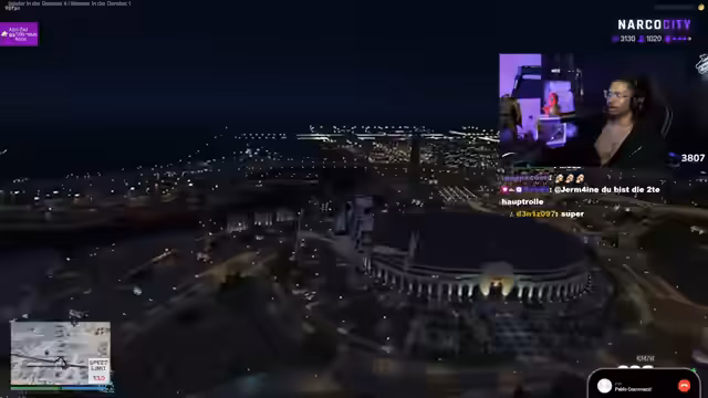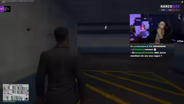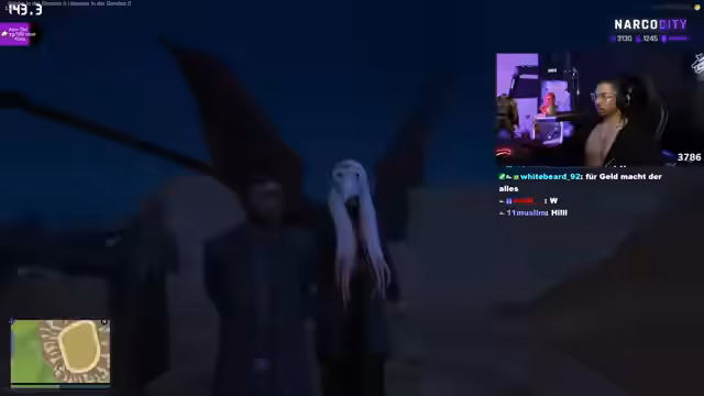 01:10:26Ein Streamer versucht eine virtuelle Einreise in die Stadt 'Narko City' und wird vor verschiedenen Kontaktpersonen wie 'Hongkong', 'Asia Boy' oder 'Benjamin' gewarnt. Der Streamer erwähnt die Anwesenheit sogenannter 'weiße Ritter', welche die Funktion haben könnten, Kontakt aufzunehmen. Des Weiteren wird die Bekanntheit der Figur 'Diamond' thematisiert, deren Handy Ortungsdaten im Gespräch sind und die eine wichtige Rolle in der Stadt spielen könnte.