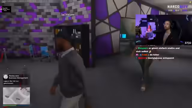 00:43:47Der Hauptfokus des Streams verlagert sich auf das Rollenspiel (RP) im NarkoCity-Server. Ein neuer Charakter namens David Backmann wird durch eine detaillierte Einreise-Prozedur begleitet. Dabei werden die RPs mit einem Beamten namens Alejandro gespielt, der den Charakter auf seine Ehrlichkeit und seine Ambitionen in der Stadt testet. Die Interaktion ist geprägt von technischen Hürden, wie dem Befehl zum Hinsitzen, und der Frage nach den Verhaltensregeln in der Spielwelt.