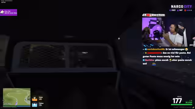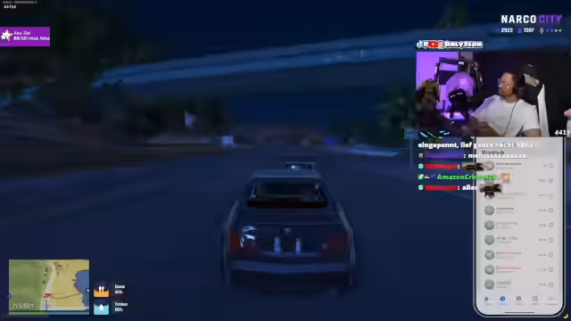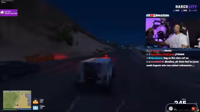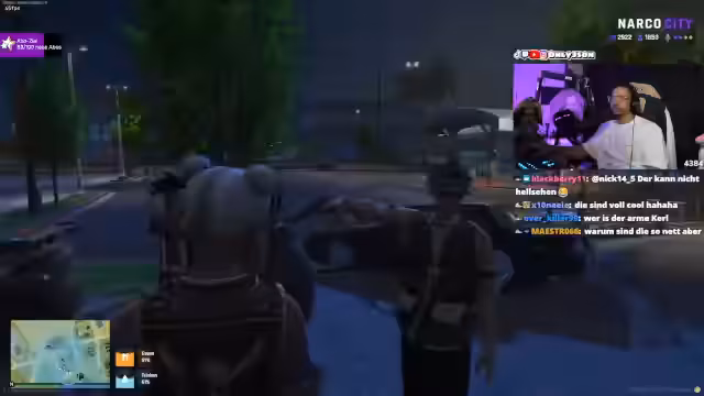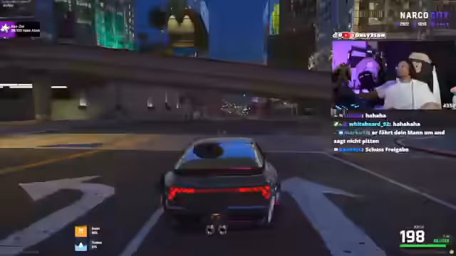 01:30:16Eine hektische Verfolgungsjagd führt zu einer Konfrontation. Ein Fahrzeug wird von einer anderen Gruppe attackiert, wobei Reifen beschossen werden. Der Streamer gerät in einen Zwischenfall und muss eine Geisel vor seinen eigenen Leuten schützen, die den Gefangenen erschießen wollen. Nachdem die Lage vorübergehend beruhigt ist, geht es um den Aufenthaltsort und die Rolle eines bestimmten Anführers, der offenbar im Verdacht steht, Informationen verraten zu haben. Eine überraschende Nachricht kündigt an, dass der Streamer ein Kopfgeld auf ihn ausgesetzt wurde.