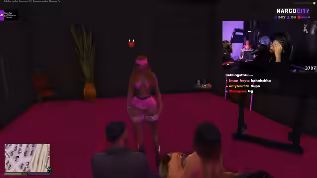 03:02:50Der Streamer und seine Begleitung erreichen den Ort 'Unicorn'. Hier soll eine Tänzerin auftreten, deren Name angeblich 'Big Mama' ist. Es gibt jedoch Verwirrung und Misstrauen, da die Tänzerin von einer dritten Person organisiert wurde und niemand ihren echten Namen kennt. Eine Konfrontation zwischen der anwesenden Dame (Bella) und der Tänzerin ist zu befürchten, da Bella nicht möchte, dass ihr Partner eine andere Frau sieht, während der Streamer dies als einen 'spaß für uns beide' darstellt.