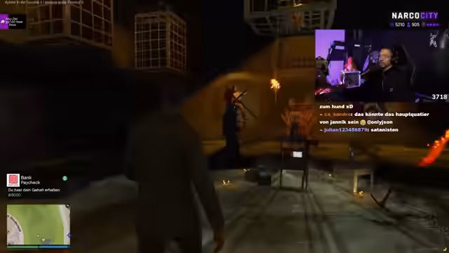 00:18:07Der Stream startet ein interaktives Community-Event, die 'Kürbisjagd', das dem Ostereiersuchen ähnelt. Die Zuschauer sollen Kürbisse sammeln, die gegen Belohnungen im Spiel eingetauscht werden werden. Parallel dazu spielt der Streamer eine Rolle als 'Herr Diamond', der die italienische Mafia um eine Geldwäsche für 5 Millionen Dollar Schwarzgeld bittet. Die Verhandlungen mit 'Caravelli' werden dramatisch inszeniert, wobei der Streamer über Preise von 10 bis 26% handelt und schließlich auf 10% einigt, nachdem er einen betrügerischen Würfelvorgang simuliert hat.