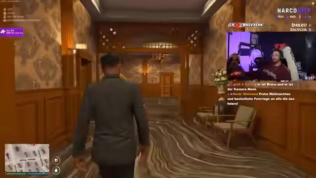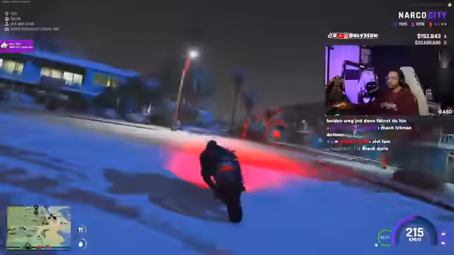 00:20:42Der Streamer stellt ein neues Giveaway-Format vor: Ein "Narko City Giveaway", bei dem der erste Teilnehmer im Vollcam-Bereich gewinnt, ohne Helikopter zu nutzen. Parallel wird Minecraft vorbereitet, wobei technische Probleme mit Steam und GTA diskutiert werden. Der Chat wird über die nächsten Schritte informiert, inklusive eines möglichen Minecraft-PvPs.