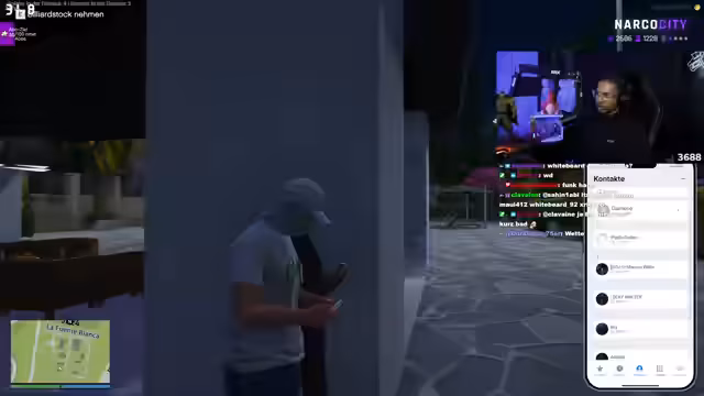 06:18:21Ein zufällig getroffener Spieler namens Diego wird angesprochen, da er arbeitslos ist. Die Streamerin bietet ihm einen Job an, der als 'Läufer' in der 'Hood' beschrieben wird, was offenbar eine kriminelle oder illegale Tätigkeit impliziert. Um diesen Job zu sichern, wird ein Anruf an einen 'Prince' getätigt, der als Kontaktmann fungiert. Diego soll für den Kollegen arbeiten, und im Gegenzug verspricht die Streamerin, ihn mit einem anderen Outfit auszustatten und ihn finanziell zu entlasten, da er aktuell tief in den Minus ist. Diese Interaktion stellt eine konkrete Kooperation und Rekrutierung eines neuen 'Mitstreiters' dar.