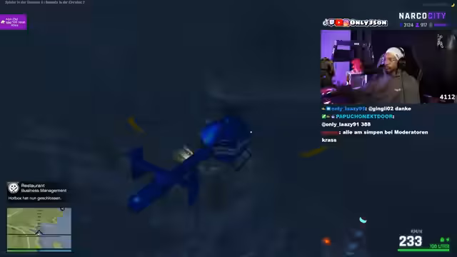 00:14:17Nach einigen technischen Schwierigkeiten mit dem TeamSpeak startet der Stream ein Rollenspiel im 'Narko City'-Server. Er agiert als Grenzbeamter und nimmt den fiktiven Charakter 'Larry' in die Befragung auf. Es werden humoristische und absurde Fragen gestellt, die sich auf Rollenspiel-Aspekte und private Details konzentrieren. Der Charakter Larry erzählt eine widersprüchliche und surreale Geschichte über seinen Aufenthalt in Kanada und einen Kampf gegen einen Bären namens Balu in Frankfurt.