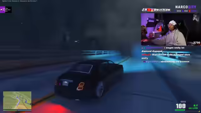 06:16:04Um von den emotionalen Spannungen abzulenken, schlägt der Streamer ein Straßenrennen gegen Bella vor. Beide wetten um symbolische Gegenstände (Nägel vs. Autos), während sie ihre Rivalität und vereinbarte Spielregeln in Rollenspiel-Form verhandeln. Während des Rennens kommt es zu technischen Problemen mit Fahrzeugen, die als humorvolle Metapher für ihre Beziehungsdynamik dienen. Nach dem Rennen nutzt der Streamer die Gelegenheit für eine Werbeunterbrechung des 'Late Night V'-Servers und animiert die Zuschauer zur Teilnahme mit seinem Creator-Code. Die Szene endet mit versöhnlichen Gesten, bleibt aber von angespannter Grundstimmung geprägt.