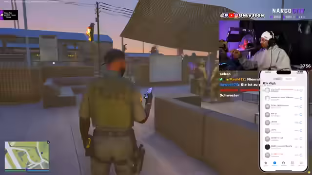 01:39:07Der Stream beginnt mit einer Mission unter dem Codenamen "Spezi". Das Ziel, ein Speedrun, ist, eine Kolonne zu bilden und einen Angriff auf den Sandy-Airfield-Flughafen durchzuführen. Der Einsatz startet mit Waffengewehr und einer Musiktradition. Die FIB-Gruppe wird jedoch von der feindlichen Fraktion "Die Aussteiger" schnell und rücksichtslos besiegt. Der Kampf dauert nur zwei Minuten und endet in einer deutlichen Niederlage.