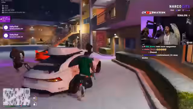 06:27:00Der Streamer setzt alles daran, den gestohlenen Wagen wiederzufinden. Mit Hilfe seines Chats und einem GPS-Gerät verfolgt er Spuren durch verschiedene Stadtteile. Es gelingt ihm, den Aufenthaltsort des Fahrzeits zu identifizieren. Der Streamer ist fest entschlossen, den Täter zur Rede zu stellen und sein Eigentum zurückzuerhalten, was zu einer direkten Konfrontation führt, bei der er die Kontrolle über die Situation wiedererlangen will.