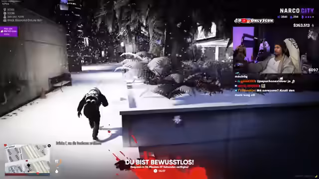 05:02:45Eine verdeckte Operation beginnt, bei der der Streamer versucht, einen Verdächtigen festzusetzen. Er findet Unterstützung durch einen Verbündeten und zieht im Stadtteil eine Verfolgungsjagd durch. Es kommt zu einem heftigen Schusswechsel, in dem sich der Streamer als geübter Kämpfer zeigt. Der Verdächtige wird überwältigt, was zu einer Festnahme führt und die anfängliche Wut des Streamers in einen sarkastischen Sieg verwandelt.