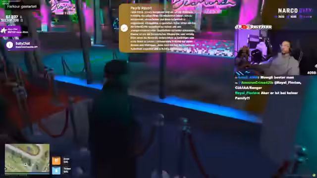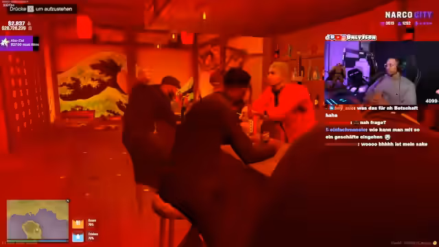 00:05:36Während des Streams kommt es zu einem dramatischen Vorfall vor dem Diamond Casino. Zwei maskierte Täter nehmen Geiseln und drohen mit einer Sprengbombe. Sie fordern 6 Millionen Dollar von dem Besitzer, Diamond. Bei der Konfrontation bietet an, stattdessen um 10 Millionen Dollar zu Roulette zu spielen. Der Streamer setzt alles auf rot, gewinnt die Wette und kann die Geiseln lebendig befreien und die Bombe entschärfen. Die Täter fliehen und hinterlassen einen Fernseher.