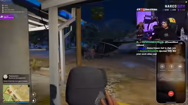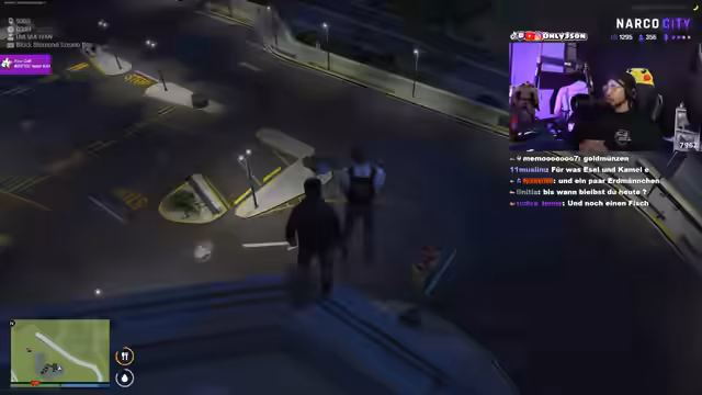 06:28:28Nach der Geiselsituation folgen weitere Verhandlungen über den Drogenhandel. Der Streamer übergibt 'Schnee' (Kokain) und weitere Waren, während er versucht, die Lage mit SGF-Mitgliedern zu deeskalieren. Es kommt zu einer Begegnung mit einem zivilen Ermittler, der eine Zusammenarbeit vorschlägt. Gleichzeitig wird die 'Stepsis'-Dynamik mit Melissa erneut aufgegriffen, als ein anderer Spieler (Diamond) eifersüchtig reagiert und für seine 'Schwester' Bezugszahlforderungen (30 Millionen Dollar, Gold, Kamele) stellt. Der Streamer lehnt dies humorvoll ab, bevor die Szene in allgemeinem Smalltalk und Stream-Abschluss ausklingt.
