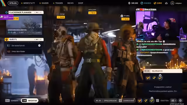 10:18:13Nach einer vermeintlich leeren Runde wird der erhaltene Loot bewertet. Der Streamer moniert, dass wertvolle Gegenstände wie Halsbänder oder Waffen liegen geblieben sind. Es folgt eine Entscheidung: Das Team soll zum Exit bewegen, um Gefahren zu vermeiden. Gleichzeitig plant er mit Zuschauern Duos für die nächste Session, erwähnt aber Wladimir als bevorzugten Partner für eine gemeinsame Runde.