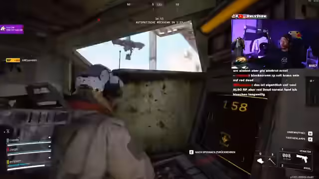 07:24:28Das Team koordiniert sich während einer intensiven Runde in Arc Raiders. Der Streamer dirigiert seine Partner strategisch durch die Map, kommuniziert Gegnerpositionen und plant gleichzeitig Exit-Camping als Gewinnstrategie. Nach einem erfolgreichen Kampf analysieren sie ihre Taktik, tauschen Loot aus und diskutieren die Effektivität ihres Teamplays, bei dem sie bewusst auf Kämpfe warten, bis andere Teams sich gegenseitig geschwächt haben.