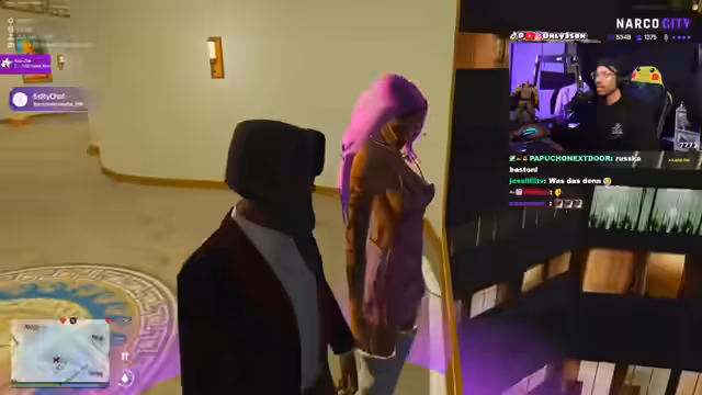 02:58:19Der Streamer wird von Max von der NCPD kontaktiert, um bei der Verhaftung des gesuchten Kriminellen Nitsu Kuroya zu helfen, der Mitglied der Public Enemy Gang ist. Nach einer fehlgeschlagenen Festnahme mit Schusswechsel wird eine Belohnung in Aussicht gestellt. Diamond verhandelt erfolgreich um eine Beförderung für seine Frau Sophia, finanzielle Anreize und seltene Baupläne (Tempest Waffe). Die Gruppe vereinbart ein Treffen in der Tiefgarage, um die Operation zu planen, wobei undercover Taktiken und die Nutzung von Informationen aus einer digitalen Akte (Haftbefehl 319) diskutiert werden.