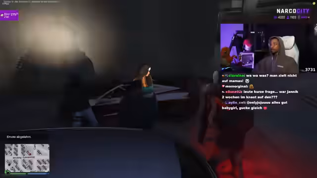 02:38:05Der Streamer fragt, was der andere macht. Er schreit "Oh mein Gott". Er sagt, dass sein Teamspeak crasht und er gleich wirklich crashen geht. Er sagt, dass die Jungs immer das Crash nicht mehr weiten, wenn er diese 4.0 installiert. Der Streamer fragt, ob er ihn hört. Er sagt, dass er ihn von hinten festsehen wollte, damit er keine Tante ausmacht. Er sagt, dass sie einen von denen haben, aber niemanden wichtigen mehr. Der Streamer sagt, dass er gleich aus diesem Motor geht und er ihn reparieren muss. Er fragt nach dem Namen desjenigen hinter dem Wagen (Roberto). Der Streamer sagt, dass das wichtig ist. Er sagt, dass er fast draufgegangen ist. Er ruft Codex an. Der Streamer sagt, dass sie direkt hinter ihrem Ego sind. Der Streamer sagt "Hey Santana mein alter Freund, wie geht's dir?". Der Streamer fragt, ob er sich noch an ein Versprechen erinnert, das er ihm gegeben hat. Der Streamer fragt, was für ein Versprechen. Der Streamer sagt, dass der Nächste in sein Register eingetragen wird. Der Streamer fragt, was in sein Register eingetragen wird. Der Streamer sagt "Roberto". Der Streamer sagt, dass er ihn hat. Der Streamer sagt, dass sie ihn nur schicken können. Der Streamer sagt, dass der bei seinem Wettbewerb ist. Der Streamer sagt, dass der Roberto gehört. Der Streamer sagt, dass er jetzt sterben wird. Der Streamer sagt, dass er ein lausiger Soldat für ihn ist. Der Streamer fragt, ob Roberto das hört und ob es ihn nicht verletzt, dass sein Patron so über ihn redet. Der Streamer sagt "Santana, du bist ein schlechter Mensch". Der Streamer sagt, dass er für seinen Patron sterben würde. Der Streamer sagt "Roberto, halt durch. Er wird gleich gefiegt. Viva la, hermano. Viva la cartella". Der Streamer sagt, dass er sich mit dem Falschen anlegt und sie zu hoch für ihn sind. Santana wird beleidigt und als "kleine Fotze" bezeichnet. Roberto wird ein Bild gemacht und es wird gefragt, ob das in Ordnung ist. Der Streamer fragt, was ihr Plan ist. Er sagt, dass der Plan der Plan ist und der Weg das Ziel ist.