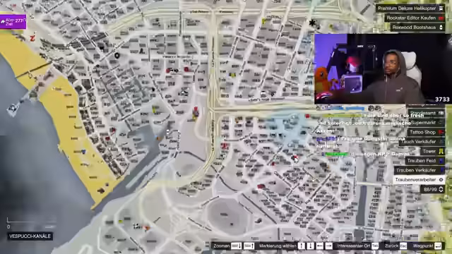 01:28:58Am Anfang des Streams geht es um das Zusammentreffen der Charaktere Malik, Jamali und Carlos für einen geplanten Juwelierraub. Es werden Waffenvorräte geprüft und die Einsatzbereitschaft besprochen. Gleichzeitig wird der Cargobob für die geplante Flucht vorbereitet, um später die Beute und die Geisel in Sicherheit zu bringen. Ein US Marshal, Santander Asyl, wird als Geisel genommen und zur Kommunikation mit den Behörden gezwungen. Der Streamer erklärt die Ernsthaftigkeit der Situation und betont, dass es sich hierbei nicht um ein Spiel handelt.
