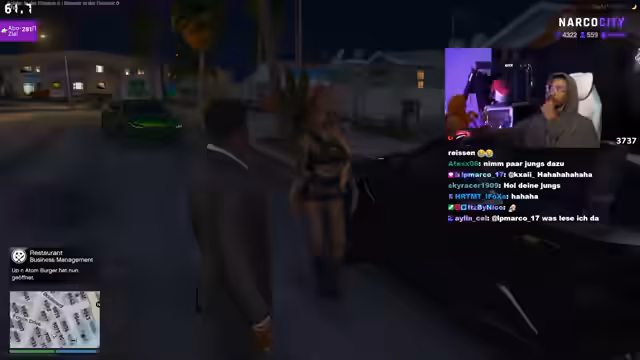04:19:16Der Streamer trifft auf zwei Gangmitglieder, Coco und Prince, und erkennt ihr Potenzial. Er schlägt vor, dass sie in Davis ein Viertel übernehmen und dort Geschäfte machen, wobei er ihnen Drogen wie Crack und Weed zur Verfügung stellen will. Er bietet ihnen Schutz und Unterstützung an, falls sie Probleme mit anderen Gangs bekommen sollten. Der Streamer betont, dass er eine Vorzeigegang aufbauen will und dass er bereit ist, gegen jeden vorzugehen, der Davis stört. Er will die beiden in sein Casino einladen und ihnen dort eine Plattform bieten. Der Streamer hat Kontakt zu Jermaine, einem Labelbesitzer, und will die beiden Gangmitglieder in die Musikszene einführen. Er betont jedoch, dass er von ihnen mehr erwartet als nur Straßengangster zu sein. Er will, dass sie etwas aus ihrem Leben machen und sich nicht mit dem einfachen Gangsterleben zufriedengeben. Der Streamer plant, die Gangmitglieder in sein Geschäft zu integrieren und ihnen so eine Perspektive zu bieten.