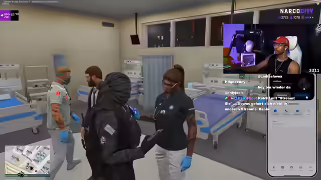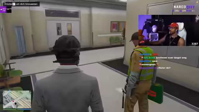 02:44:27Krauser spendet überraschend 20 Subs, was große Freude auslöst. Der Streamer sucht nach einem Bart und erinnert sich dann an eine Maske. Eine Kolonne von vier schwarzen SUVs wird gesichtet. Der Streamer befindet sich nun in einem Krankenwagenwagen und fragt Jersey nach seinem Standort, der zur Garage kommen soll. Es wird ein Gespräch mit einer Person vom DOJ geführt, die anbietet, bei Problemen zu helfen. Winters hat angerufen, aber der Anruf wird ignoriert. Es wird erwähnt, dass jemand in A3 geschossen hat. Das Codewort "Kartoffelsalat" wird festgelegt, um den Beginn einer Aktion zu signalisieren. Der Streamer fragt nach Caravellis Position und ob er noch im Krankenhaus ist. Es wird beobachtet, wie jemand einen Typen abführt, und der Streamer bereitet sich darauf vor, sich dem MD zu nähern. Jigsaw wird in der Main Hall gesichtet, und es wird erwartet, dass er hinten herauskommt, wo viele Leute stehen.