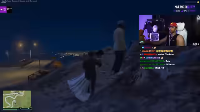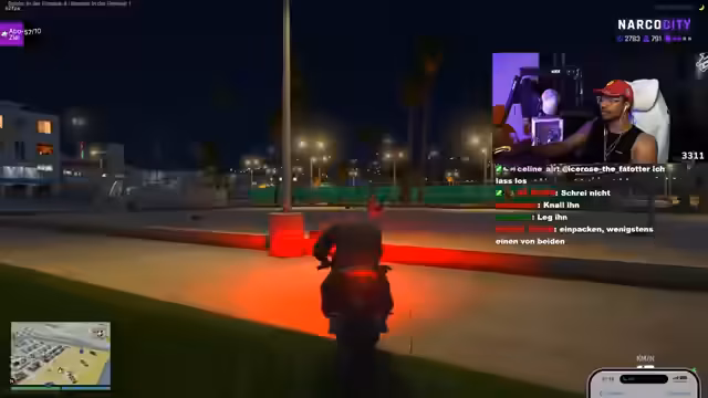 04:16:20Der Streamer äußert seine Enttäuschung über das Verhalten eines Bruders und bittet darum, nicht über andere Nummern kontaktiert zu werden. Sidi, ein Stargast, tritt dem Chat bei und sorgt für erhöhte Aktivität. Der Streamer scherzt darüber, Frauen einstellen zu müssen, um die Männer im Chat aktiver zu halten. Es folgt ein Besuch im Kleidungsladen, wo der Streamer auf Trapper trifft, der eine Maske trägt. Es entwickelt sich ein Gespräch über die 'Opium Gang' und Warnungen bezüglich Davies. Der Streamer entschuldigt sich bei Trapper für die Einladung zur Hochzeit und erklärt, dass verschiedene Familien unterschiedliche Missionen hatten. Er bietet an, Alina mit Maske zu entführen, um ein Date zu ermöglichen, und schlägt vor, dass sie sich von ihrem Freund trennen müsse. Es folgt ein bizarres Gespräch mit Alinas Freund, der respektlos und abweisend reagiert. Der Streamer gesteht Alia seine Zuneigung und fordert sie auf, sich zu entscheiden.