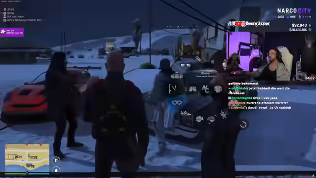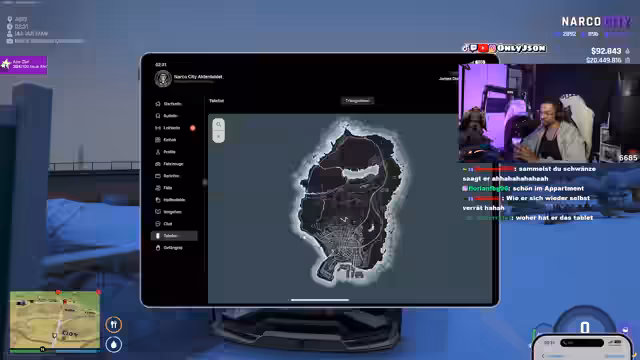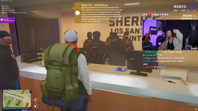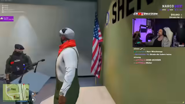 03:18:46In einer Szene mit Rollenspiel-Elementen führt der Streamer eine Verkehrskontrolle durch. Ein Fahrer wird gestoppt, der angeblich Obst transportiert. Der Streamer (als Polizist) beanstandet das Fahrzeug und fordert Personalien. Es entsteht ein Konflikt, da der Fahrer eine Dienstaufsichtsbeschwerde androht und angibt, zuvor von Polizisten zusammengeschlagen worden zu sein. Der Streamer versucht, die Situation über das offizielle System (DAB/Dienstaufsichtsbeschwerde) zu klären, scheitert aber an proceduralen Hürden und Personalengpässen. Es kommt zu einer hitzigen Diskussion über Polizeiprozeduren und Korruptionsvorwürfe.