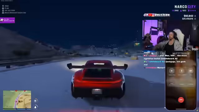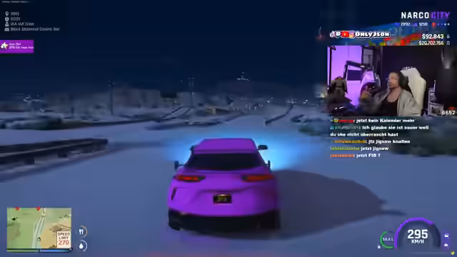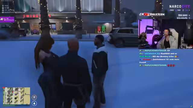 02:47:45Der Streamer betritt das DOJ-Gebäude, bemerkt aber kaum anwesende Spieler. Es folgt ein improvisiertes Telefonat mit einer als "Mama" getarnten Person. Dabei werden persönliche Weihnachtswünsche ausgetauscht und kleine Geldbeträge (20 Dollar) versprochen. Anschließend plant der Streamer einen Undercover-Einsatz gegen Korruption. Er kontaktiert "Diamond" und bietet 500.000 Spielgeld für die Eliminierung eines Helikopterpiloten an, handelt aber letztlich 50 Subs als Gegenleistung aus. Nach einem kurzen Sidequest-Abenteuer kehrt die Handlung zum DOJ zurück.