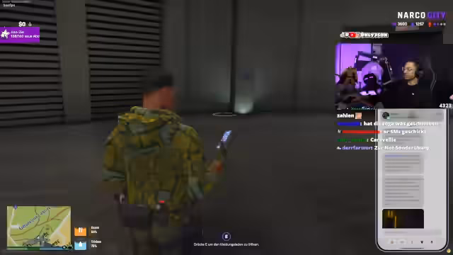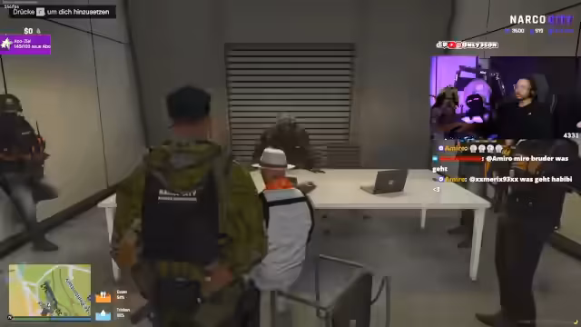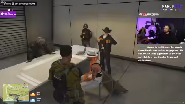 03:57:41Es finden Diskussionen über geheime Kooperationen statt, darunter eine Partnerschaft mit der 'asiatischen Botschaft'. Im Gegenzug für Informationen und spezielle Karten, die Waffengeschäfte ermöglichen, sollte der Streamer eine Frau namens Shelley 'beglücken'. Der Streamer äußert zudem seine moralische Ablehnung einer Zusammenarbeit mit staatlichen Institutionen, die er als Feigheit bezeichnet.