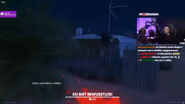 00:02:47Der Stream beginnt mit dem Streamer, der die Zuschauer begrüßt und den Support im Chat erkennt. Viele Zuschender werden namentlich für ihre Subs und Streaks erwähnt. Ein wiederkehrendes Thema sind Gerüchte über Pausen des Streamers, denen er vehement widerspricht und als Fake-News entlarvt. Die Kommunikation mit dem Chat ist geprägt von einem lockeren, teils aggressiven Ton und der Diskussion über den Streamplan und technische Unannehmlichkeiten wie ein leides Kabel.